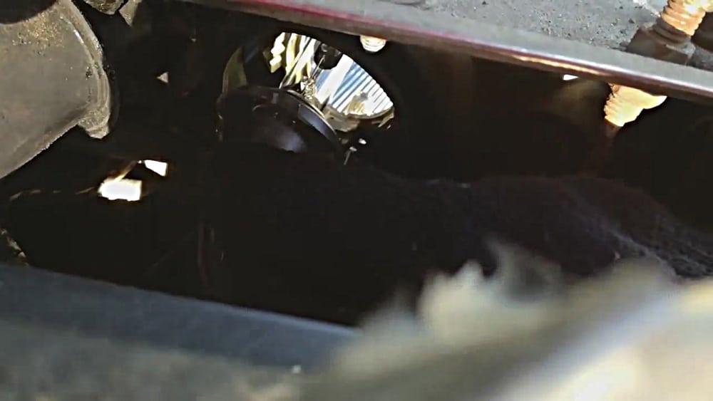 我们从大灯的左侧进行校正。但是,是的,爬到前灯的左侧,尝试更多并取出电池。